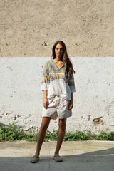 Elastic short pant. Boxer style. Sand color with cactus and sun print. 100% khadi cotton.