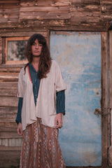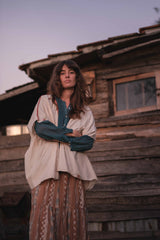 Elastic skirt, ankle length with one flounce. Printed 100% khadi cotton fabric.