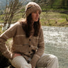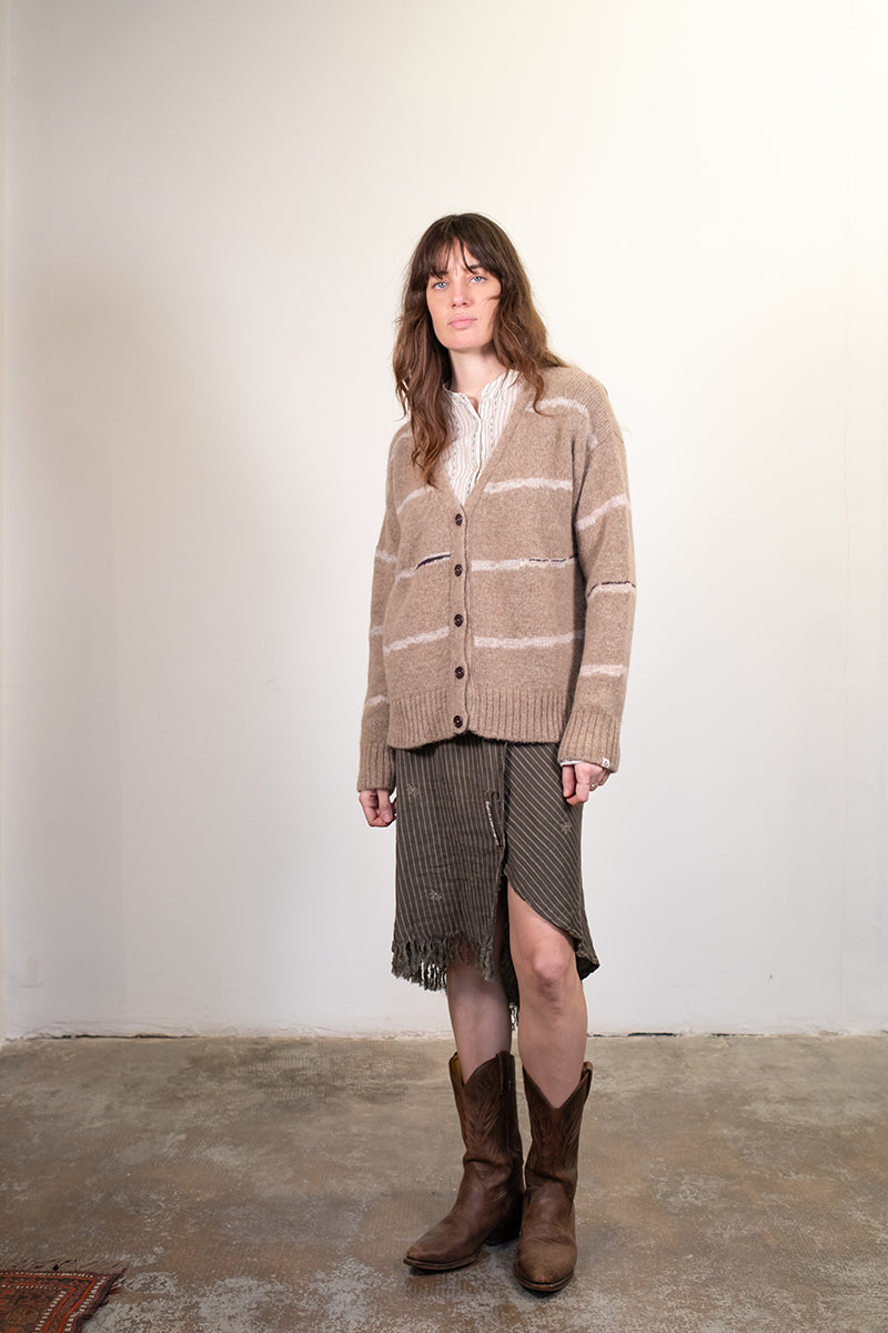 Camel color cardigan with irregular stripes. 100% wool mix - Cashmere Baby Alpaca Fine Merino