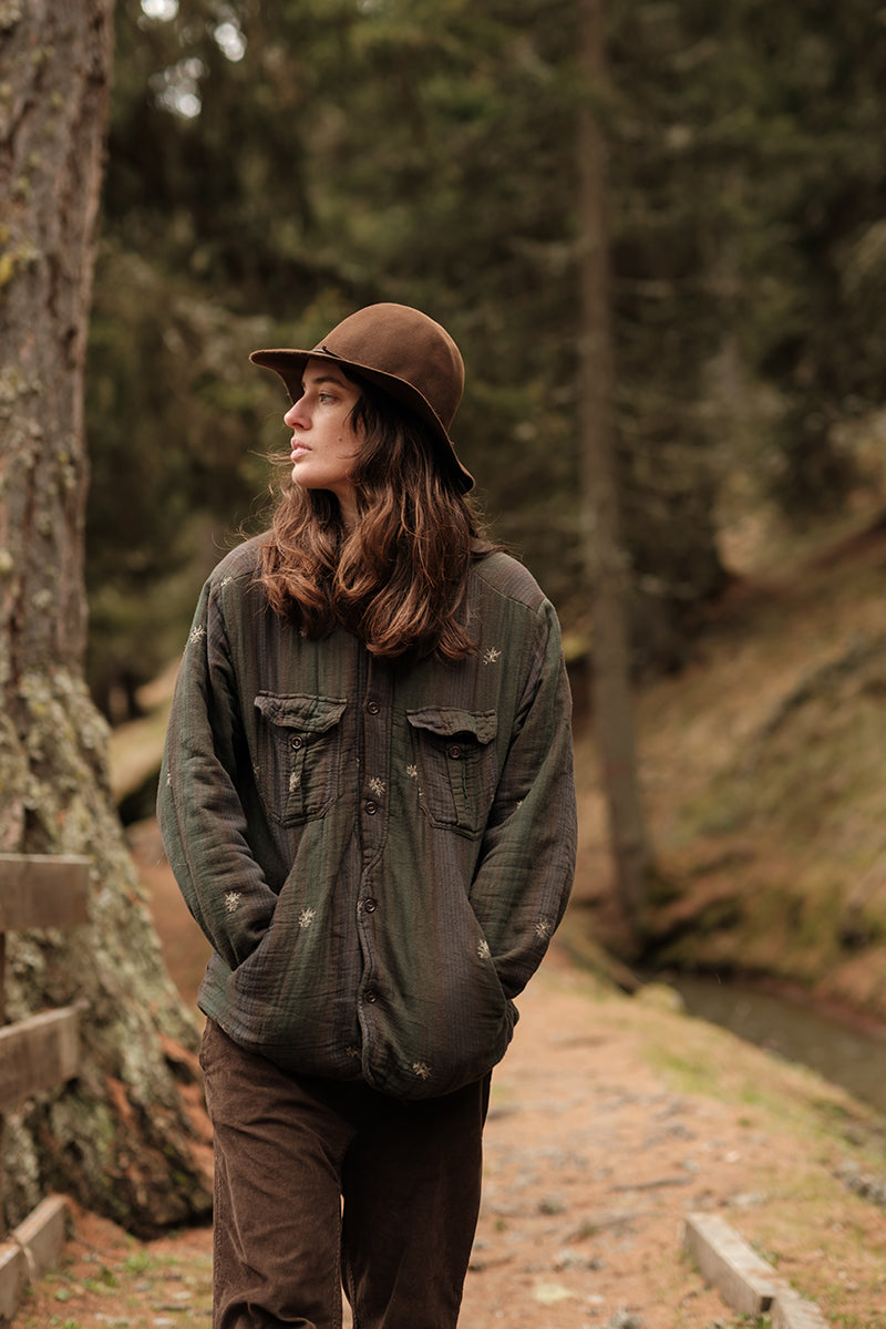 Elastic waist corduroy pant. Buttons in the front and low crotch. Warm and comfortable style in chocolate color. 100% stretch corduroy cotton.