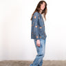 Corean collar shirt, long sleeves and henley button up. Ocean tie dye color base with flower design. 100% brushed khadi cotton.